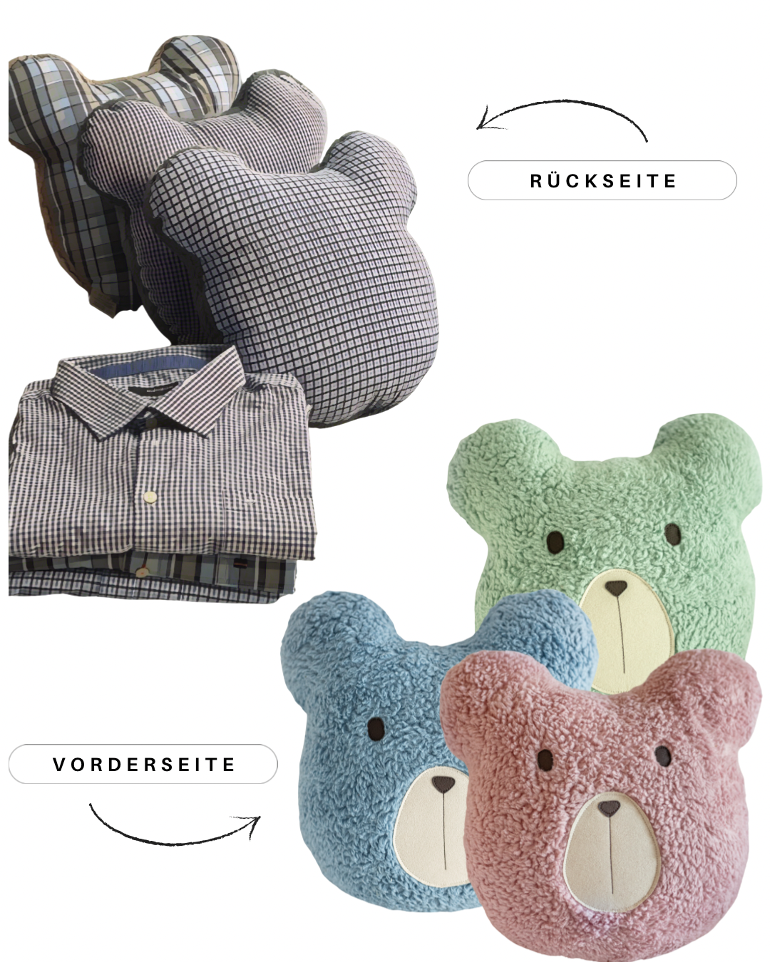 Die Rückseite kann ganz individuell aus Ihrer Kleidung gefertigt werden – entweder aus einem Kleidungsstück oder als Patchwork aus mehreren Teilen.