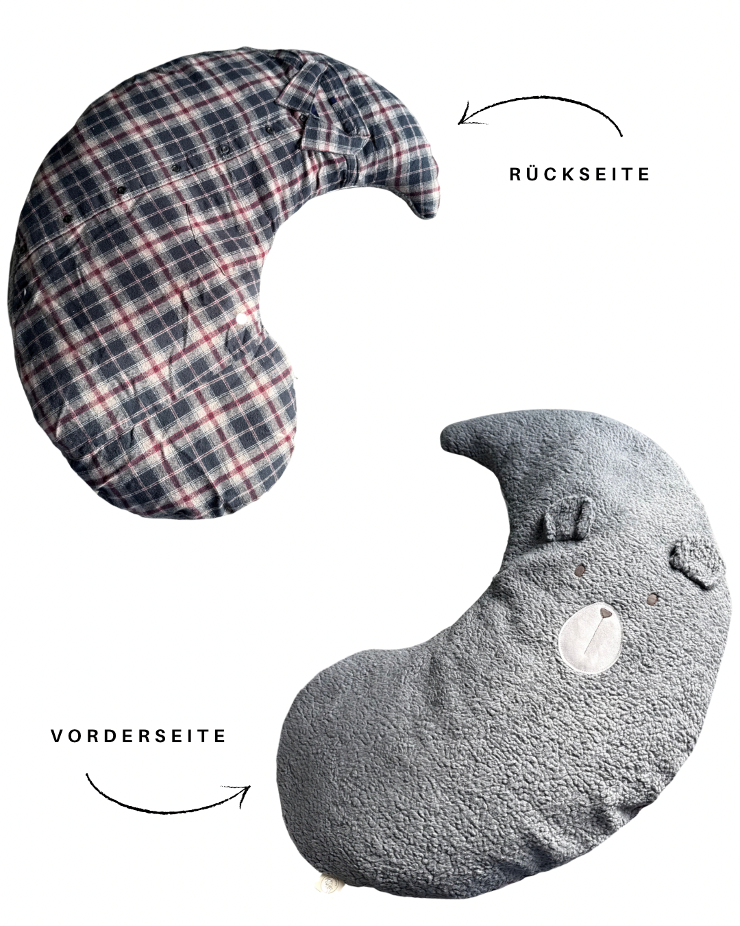 • Die Rückseite kann ganz individuell aus Ihrer Kleidung gefertigt werden – entweder aus einem Kleidungsstück oder als Patchwork aus mehreren Teilen.